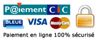 Cartes bancaires acceptées : Carte bleue, Visa, Master Card, e-carte bleue.